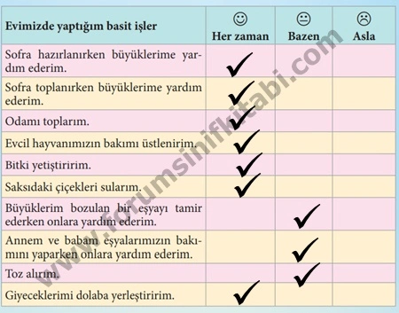 3. Sınıf Hayat Bilgisi Kitabı Evimizdeki Görev ve Sorumluluklarımız Metni Etkinlik Cevapları
