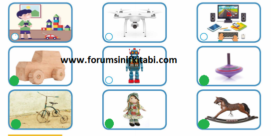 Soru: Aşağıdaki oyuncakları inceleyiniz. Daha çok aile büyüklerinizin oynadığını düşündüğünüz oyuncakları işaretleyiniz. Nasıl oynanacağını bilmediğiniz bir oyuncak varsa büyüklerinizden oyuncakla nasıl oynandığı ile ilgili yardım alabilirsiniz.