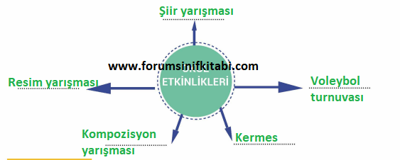 Okulumuzda birçok etkinlik milli günlerde ve belirli günlerde yapılmış olan grup halinde yapılan çalışmalar var. Ayrıca okulumuzda çeşitli kurslar yapılmaktadır. Voleybol kursu basketbol kursu satranç kursu resim kursu ve çeşitli birçok kurslar kendimizi geliştirmek ve yeteneklerimizi özverili bir şekilde geliştirmek için gerekli olan kurslardır. Bazı arkadaşlarımız ise şiir yazmakta iyidir şiir ve kompozisyon yarışmalarında yüksek not elde edebilirler kendimizi geliştirmek için öncelikle bu yarışmalara katılmak dikkatli bir şekilde çalışmak oldukça önemlidir. Belirli günler ve haftalarda ayrıca milli bayramlarda öğretmenimizin vermiş olduğu etkinliklere katıldığımız zaman sosyal hayata adapte olmuş oluruz. Bu gibi etkinliklerde grup halinde çalıştığımız için genel ve sorumluluklarımızı bilmek ve görev ve sorumluluklarımızdan bu şekilde yapmak verimli bir şekilde bu etkinlikleri bitirmemize ve tamamlamamıza yardımcı olur.