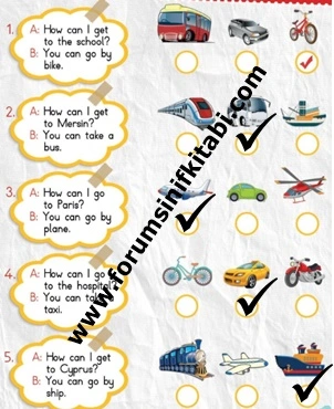 3. Sınıf İngilizce Kitabı Transportation Metni Etkinlik Cevapları
