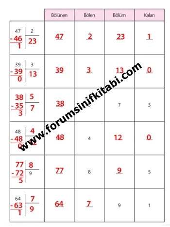 3. Sınıf Matematik Çalışma Kitabı Bölme İşleminin Terimleri Arasındaki İlişki Metni Cevapları