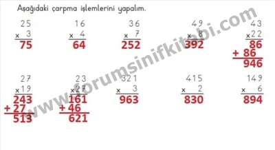 3. Sınıf Matematik Kitabı Eldesiz ve Eldeli Çarpma İşlemi Metni Cevapları