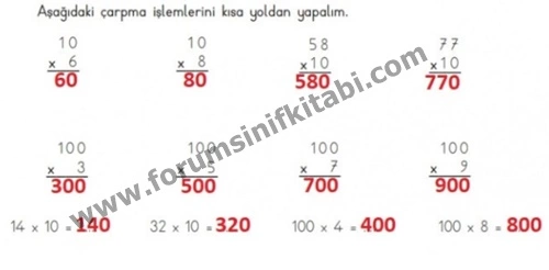 3. Sınıf Matematik Kitabı 10 ve 100 ile Kısa Yoldan Çarpma Metni Cevapları
