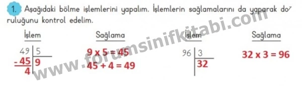 1. Aşağıdaki bölme işlemlerini yapalım. İşlemlerin sağlamalarını da yaparak doğruluğunu kontrol edelim.