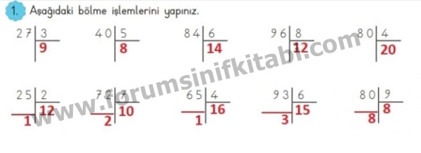 3. Sınıf Matematik Kitabı Bölme İşlemi Problemleri Metni Cevapları