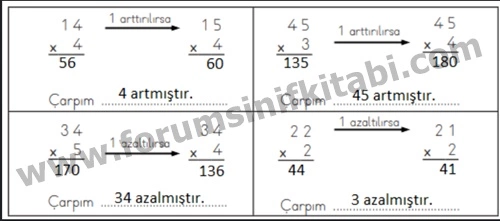 Matematik ders kitabımızda bulunan çarpma işlemi nasıl yapıldığını bulmak amacıyla verilen örnekleri cevaplandırarak matematik dersindeki önemli konuyu çözer misiniz yaptım. Çarpma işlemine dikkat edin yapmalıyız. Çarpma işleminde aklımıza takılan bir yer varsa öğretmenimizden ve doğru bilgi kaynağı olan Forum sınıf kitabı sitesinden yardım alabiliriz. Çarpma işlemini yaparken tıpkı diğer işlemlerde olduğu gibi çarpma işleminin özelliklerini ve bilgilerini bilmemiz gerekmektedir. Bir sayının kat kat ne kadar çoğalabileceğini öğrenebiliyoruz.