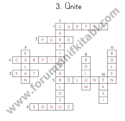 3. Sınıf Matematik Kitabı 3. Ünite Değerlendirme Soruları Cevapları