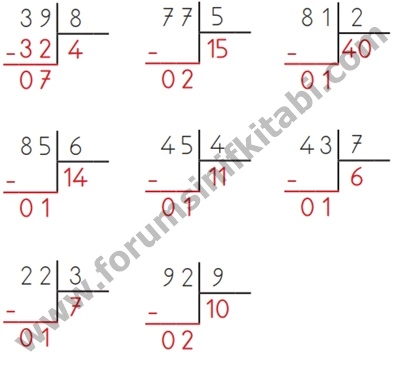 10. Aşağıdaki bölme işlemlerini yapınız.