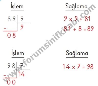 13. Aşağıdaki bölme işlemlerini yapınız. İşlemlerin sağlamalarını da yaparak doğruluğunu kontrol ediniz.