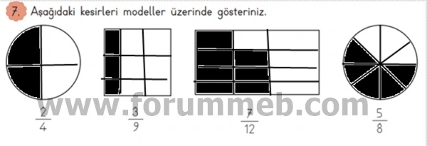7. Aşağıdaki kesirleri modeller üzerinde gösteriniz.