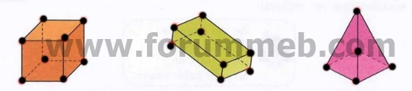 2. Aşağıdaki geometrik cisimlerin görünen köşelerini nokta ile belirterek isimlendirelim.