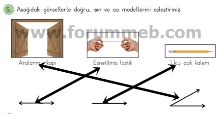 5. Aşağıdaki görsellerle doğru, ışın ve açı modellerini eşleştiriniz.