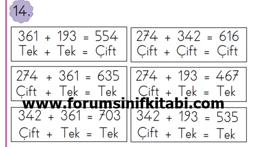 • Yukarıdaki sayılardan çift olanları toplayınız. Sonucun tek mi çift mi olduğunu yanına yazınız.