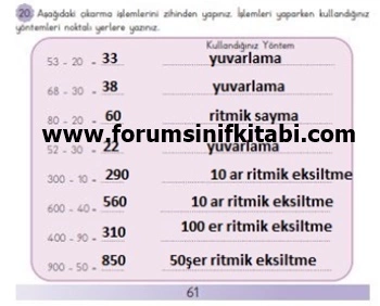 20. Aşağıdaki çıkarma işlemlerini zihinden yapınız. İşlemleri yaparken kullandığınız yöntemleri noktalı yerlere yazınız.