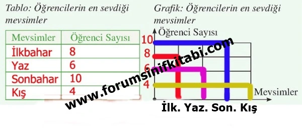 7. Sınıftaki arkadaşlarınıza en sevdiği mevsimi sorunuz. Elde ettiğiniz verilerle aşağıdaki sıklık tablosu ve şekil grafiğini tamamlayınız.