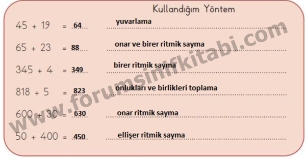 3. Sınıf Matematik Kitabı Zihinden Toplama İşlemi Metni Cevapları