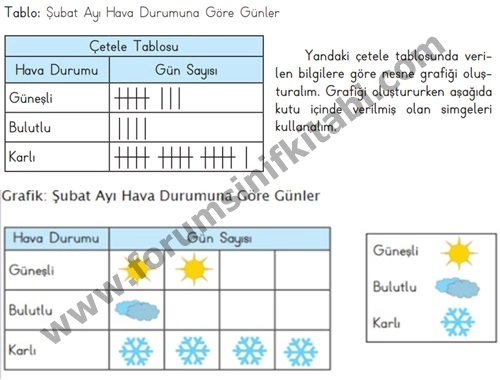 Soru : Yandaki çetele tablosunda verilen bilgilere göre nesne grafiği oluşturalım. Grafiği oluştururken aşağıda kutu içinde verilmiş olan simgeleri kullanalım.