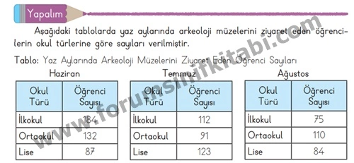 3. Sınıf Matematik Kitabı Veri Gruplarına Ait Farklı Tabloları Yorumlama Metni Cevapları