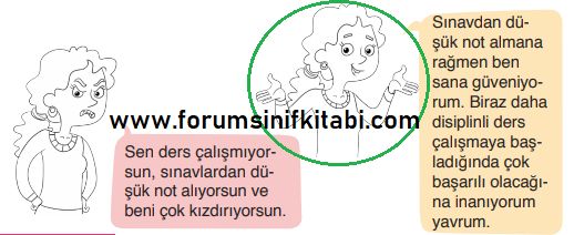 Soru: Aşağıda çocuğuyla konuşan bir annenin farklı iki konuşması verilmiştir. Doğru iletişim dilini kullanan anne görselini boyayınız