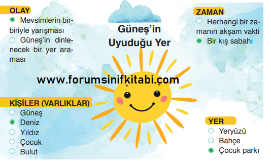 3. Sınıf Türkçe Çalışma Kitabı Güneş’in Uyuduğu Yer Metni Cevapları