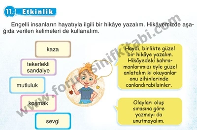 Soru : Engelli insanların hayatıyla ilgili bir hikaye yazalım. Hikayemizde aşağıda verilen kelimeleri de kullanalım.