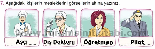 7. Aşağıdaki kişilerin mesleklerini görsellerin altına yazınız.