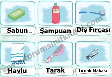 Soru : Görsellerdeki temizlik ve bakım malzemelerinin isimlerini altlarına yazalım.