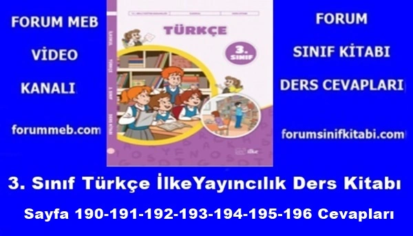 3. Sınıf Türkçe Kitabı Sayfa 190-191-192-193-194-195-196