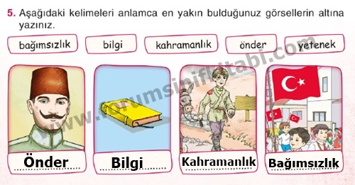 6. Aşağıdaki kelimeleri anlamca en yakın bulduğunuz resimlerin altına yazınız.