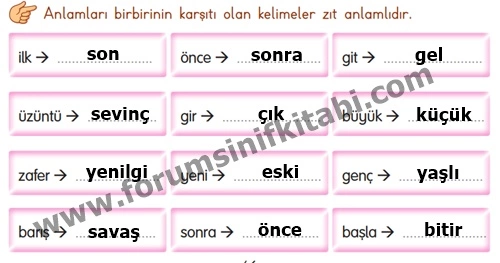 Soru : a. Aşağıdaki kelimelerin zıt anlamlılarını yazalım.
