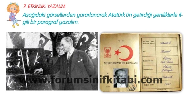 Soru : Aşağıdaki görsellerden yararlanarak Atatürk’ün getirdiği yeniliklerle ilgili bir paragraf yazalım.