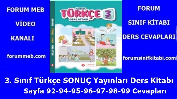 3. Sınıf Türkçe Kitabı Sayfa 92-94-95-96-97-98-99