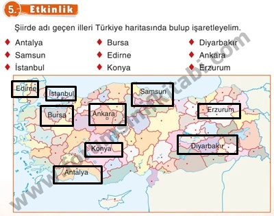 Soru : Türkiye haritasında şiirde adı geçen illeri bulup işaretleyelim.