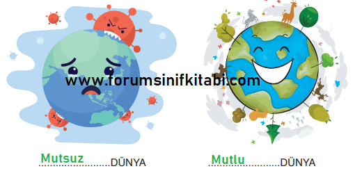 Soru: Aşağıdaki görselleri inceleyiniz. Görsellerdeki dünyaların duygu durumunu zıt anlamlı iki kelimeyi kullanarak ifade ediniz.