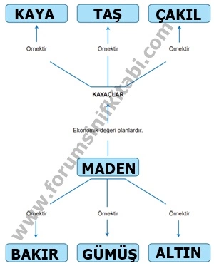 D) Aşağıdaki kavram haritasında kutuların içindeki boşluklara uygun sözcükler yazınız.