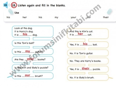 Çiftler halinde çalışın. 16. etkinlikteki nesneleri sorun ve yanıtlayın.