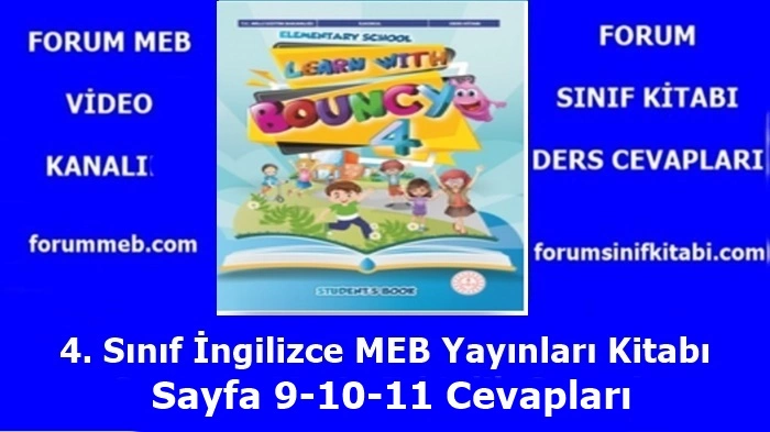 “4. Sınıf İngilizce Kitabı Sayfa 9-10-11 MEB Yayınları” konusunu videolu bir ÅŸekilde izleyebilir ve dinleyebilirsiniz.