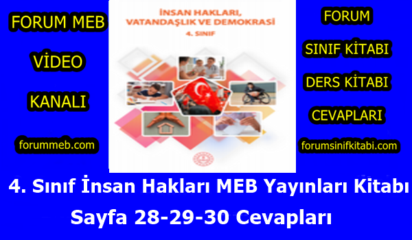 “4. Sınıf İnsan Hakları Kitabı 28-29-30. Sayfa Cevapları MEB Yayınları”