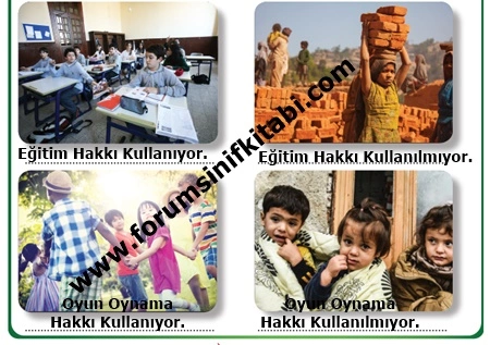 Soru : Aşağıdaki resimleri inceleyerek çocukların hangi haklarını kullandıklarını ve kullanamadıklarını yazınız.