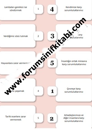 D. Aşağıdaki davranışları ait oldukları sorumluluklarla eşleştiriniz.