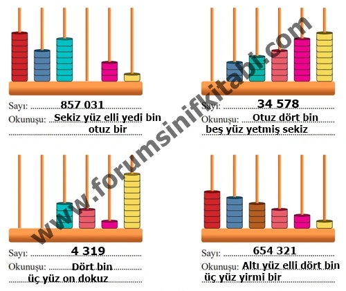 Soru : Aşağıda abaküslerle ifade edilen sayıları ve okunuşlarını altlarına yazınız.