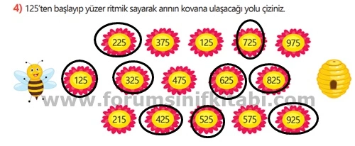4) 125’ten başlayıp yüzer ritmik sayarak arının kovana ulaşacağı yolu çiziniz.