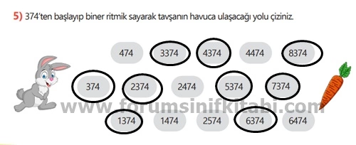 5) 374’ten başlayıp biner ritmik sayarak tavşanın havuca ulaşacağı yolu çiziniz.