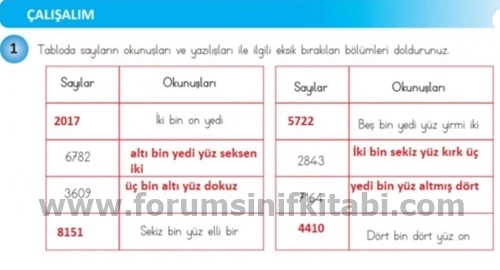 4. Sınıf Matematik Kitabı Dört Basamaklı Doğal Sayılar Metni Etkinlik Cevapları