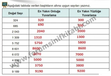 4. Sınıf Matematik Kitabı Doğal Sayıları En Yakın Onluğa ve Yüzlüğe Yuvarlama Metni Cevapları