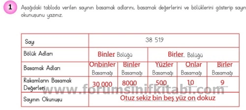 1) Aşağıdaki tabloda verilen sayının basamak adlarını, basamak değerlerini ve bölüklerini gösterip sayının okunuşunu yazınız.