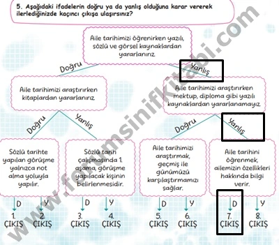 5. Aşağıdaki ifadelerin doğru ya da yanlış olduğuna karar vererek ilerlediğinizde kaçıncı çıkışa ulaşırsınız?