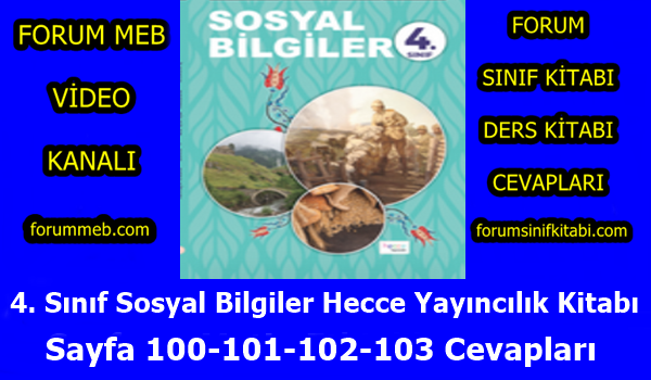 4. Sınıf Sosyal Bilgiler Kitabı 100-101-102-103. Sayfa Cevapları Hecce Yayıncılık