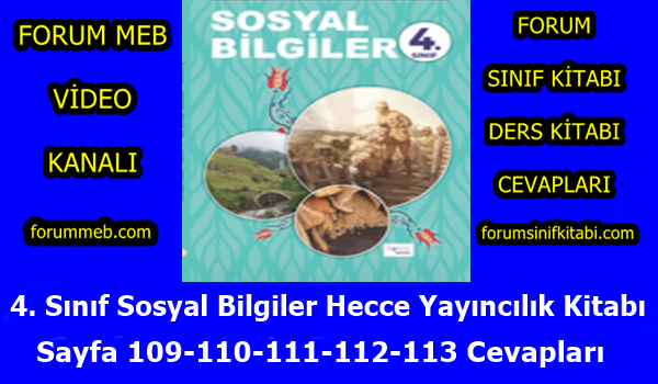 4. Sınıf Sosyal Bilgiler Kitabı 109-110-111-112-113. Sayfa Cevapları Hecce Yayıncılık