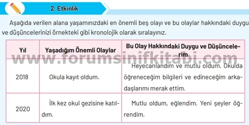 4. Sınıf Sosyal Bilgiler Kitabı Yaşam Öyküm Metin Etkinlik Cevapları